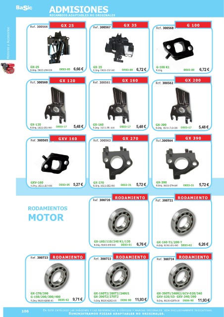 En este catálogo las imágenes y las referencias a códigos y marcas originales son exclusivamente indicativas.
