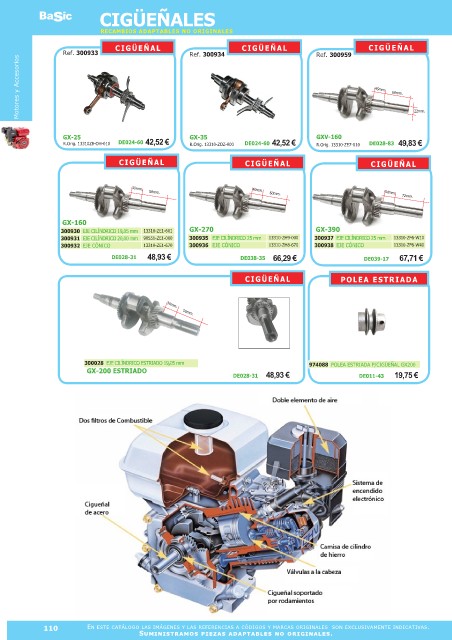 300028 EJE CILÍNDRICO ESTRIADO 19,05 mm 974088 POLEA ESTRIADA P/CIGÜEÑAL GX200