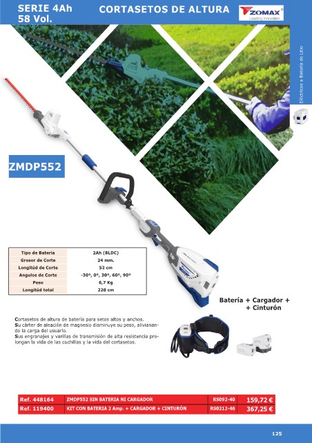 Ref. 119400 KIT CON BATERIA 2 Amp. + CARGADOR + CINTURÓN RS0212-46 367,25 €