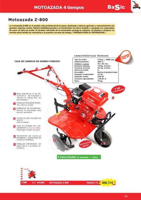 La motoazada Z-800 es el modelo más profesional de la gama, destinada a labores agrícolas y mantenimientos de