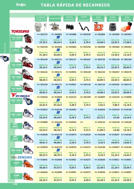 Ba ic TABLA RÁPIDA DE RECAMBIOS