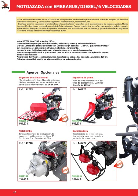 diferentes accesorios y aperos como segadoras, desbrozadoras, motobomba, etc.