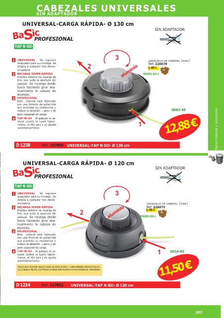1 UNIVERSAL No requiere casquillo de cabezal (ojal)