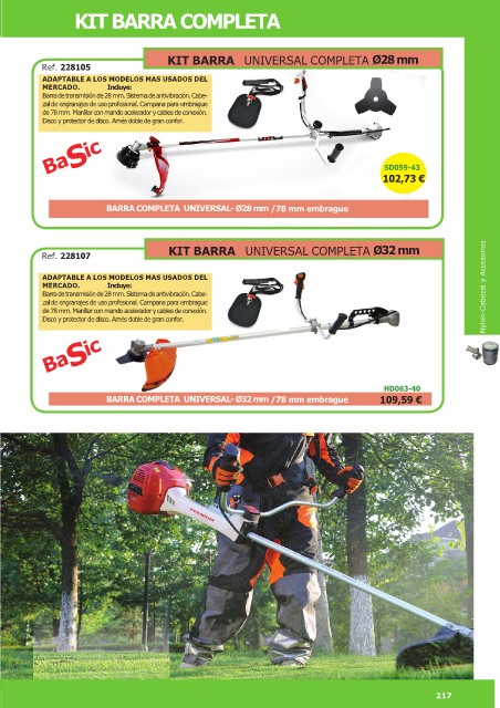 Barra de transmisión de 28 mm. Sistema de antivibración. Cabe-