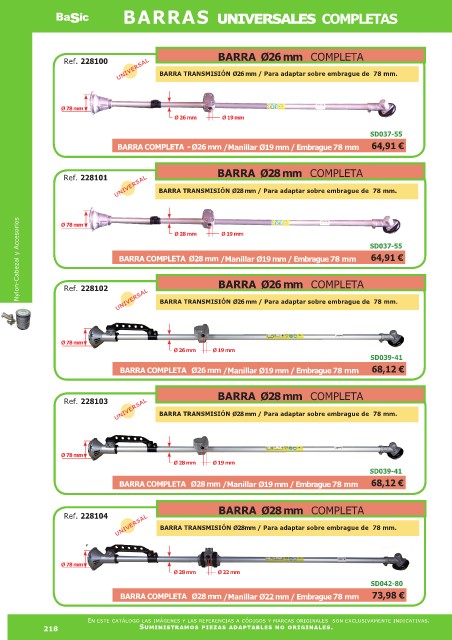 universal BARRA TRANSMISIÓN Ø28 mm / Para adaptar sobre embrague de 78 mm.