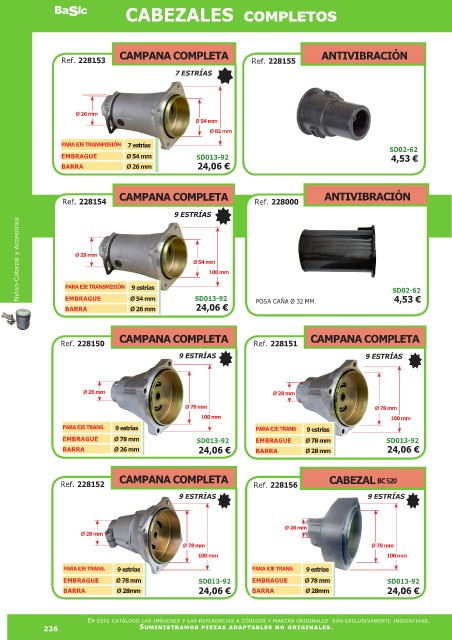 Nylon-Cabezal y Accesorios Ø 28 mm Ø 54 mm