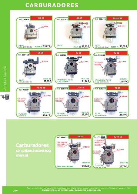 En este catálogo las imágenes y las referencias a códigos y marcas originales son exclusivamente indicativas.