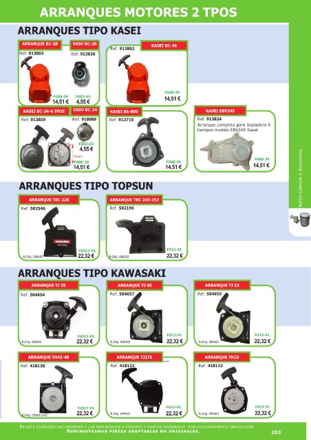 Suministramos piezas adaptables no originales. 253