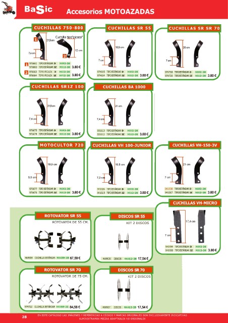 B Baa s s ic ic Accesorios MOTOAZADAS Accesorios MOTOAZADAS 28 EN ESTE CATÁLOGO LAS IMÁGENES Y REFERENCIAS A CÓDIGO Y MARCAS ORIGINALES SON EXCLUSIVAMENTE INDICATIVAS SUMINISTRAMOS PIEZAS ADAPTABLES NO ORIGINALES