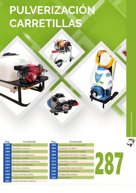 292 Mochilas atomizadores 306 Carretillas 100 litros 2 ruedas