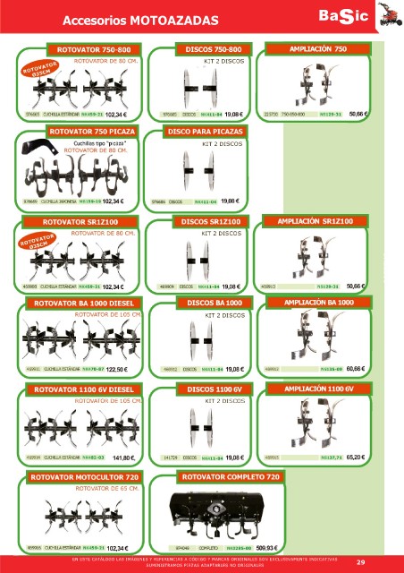 Accesorios MOTOAZADAS Ba s ic EN ESTE CATÁLOGO LAS IMÁGENES Y REFERENCIAS A CÓDIGO Y MARCAS ORIGINALES SON EXCLUSIVAMENTE INDICATIVAS 29 SUMINISTRAMOS PIEZAS ADAPTABLES NO ORIGINALES