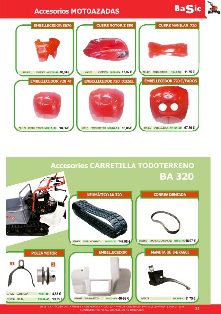 Accesorios MOTOAZADAS Ba s ic EN ESTE CATÁLOGO LAS IMÁGENES Y REFERENCIAS A CÓDIGO Y MARCAS ORIGINALES SON EXCLUSIVAMENTE INDICATIVAS 31 SUMINISTRAMOS PIEZAS ADAPTABLES NO ORIGINALES