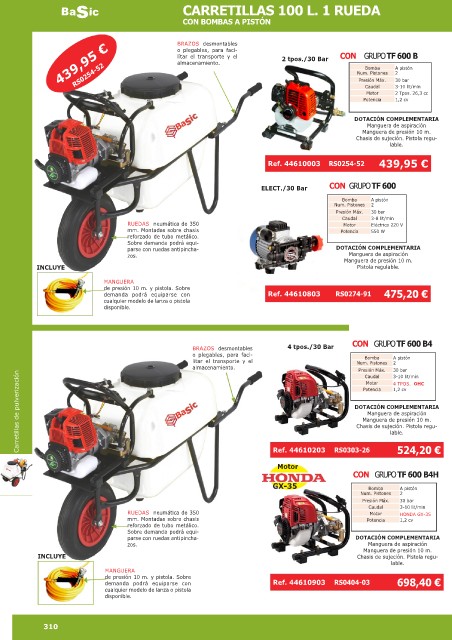 Carretillas de pulverización DOTACIÓN COMPLEMENTARIA