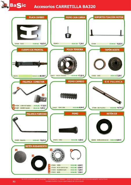 Baa B s s ic ic Accesorios MOTOAZADAS Accesorios CARRETILLA BA320 EN ESTE CATÁLOGO LAS IMÁGENES Y REFERENCIAS A CÓDIGO Y MARCAS ORIGINALES SON EXCLUSIVAMENTE INDICATIVAS 32 SUMINISTRAMOS PIEZAS ADAPTABLES NO ORIGINALES