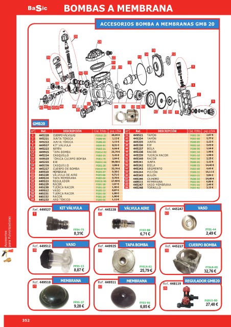 Ref. 449510 MEMBRANA Ref. 449511 MEMBRANA Ref. 448119 REGULADOR GMB20