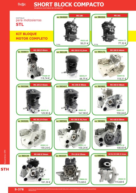 Recambios STH Ref. 503134 MS 660 Ø 54mm Ref. 503327 FS-120 Ø 35mm Ref.503451 HS 81/HS 86R Ø 34mm