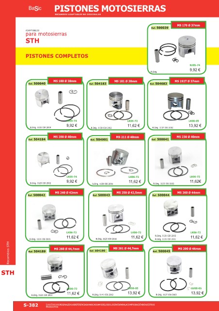 Recambios STH Ref. 504189 MS 260 Ø 44,7mm Ref. 504190 MS 261 Ø 44,7mm Ref. 500045 MS 290 Ø 46mm