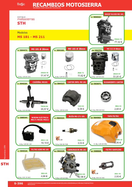 Recambios STH Ref. 504324 FILTRO AIRE MS 181 Ref. 504325 CARBURADOR MS 181 Ref. 500068 FILTRO GASOLINA