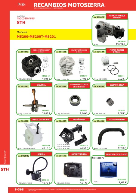 Recambios STH Ref. 503082 BOBINA Ref. 504695 SOPORTE FILTRO Ref. 500576 CUBIERTA FILTRO AIRE