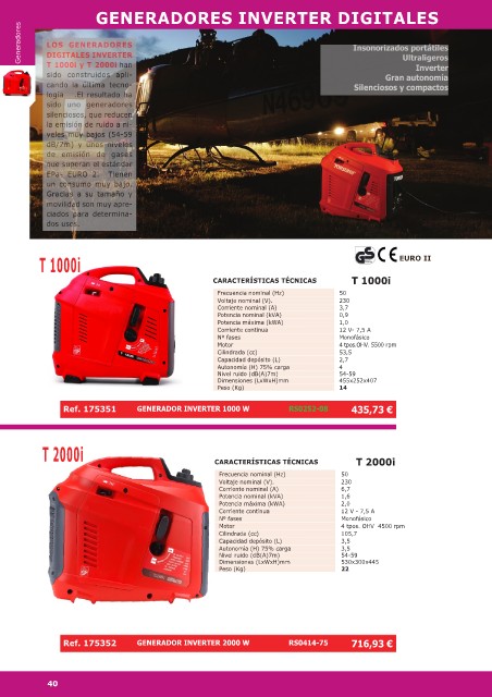 Ref. 175352 GENERADOR INVERTER 2000 W RS0414-75 716,93 €