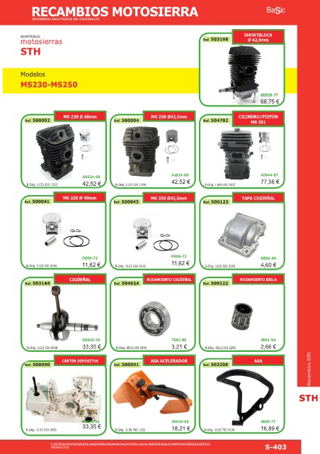 MS 230 Ø 40mm MS 250 Ø42,5mm CILINDRO/PISTÓN