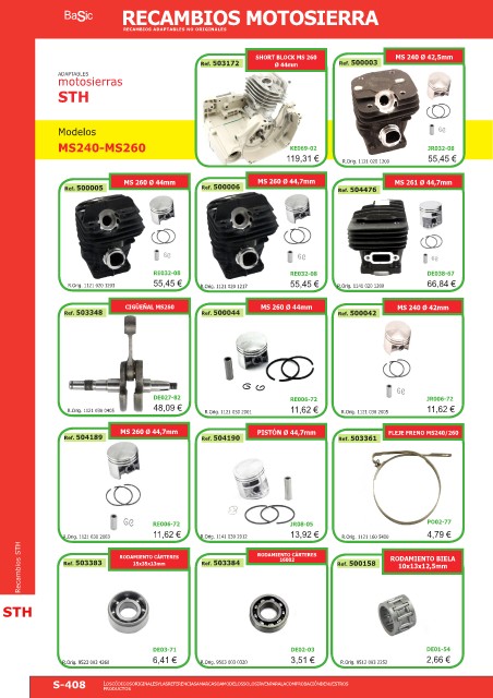 Recambios STH Ref. 503383 RODAMIENTO CÁRTERES Ref. 503384 RODAMIENTO CÁRTERES Ref. 500158 RODAMIENTO BIELA