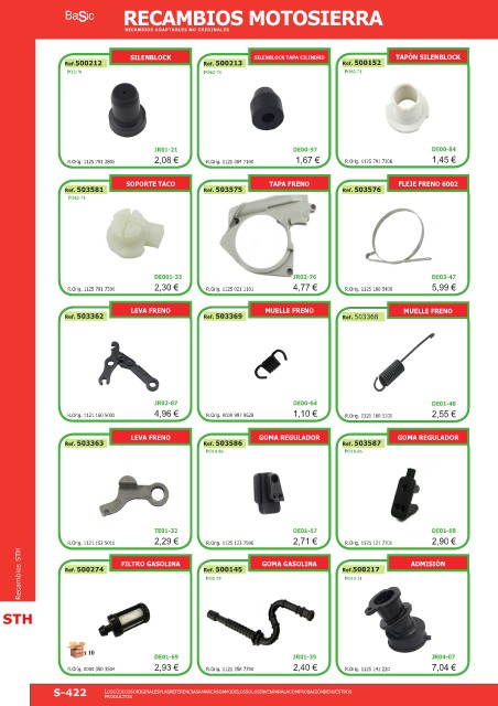 Recambios STH Ref. 500274 FILTRO GASOLINA Ref. 500145 GOMA GASOLINA Ref.500217 ADMISIÓN