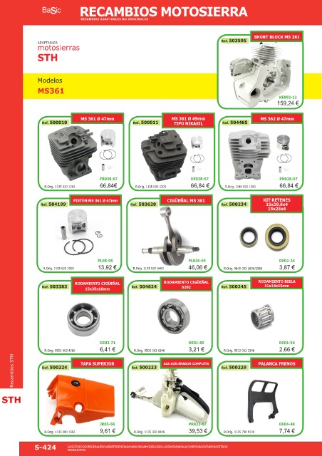 S-424 Los códigos originales y las referencias a marcas o a modelos solo sirven para la comprobación de nuestros