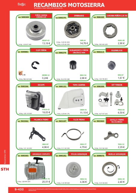 Recambios STH Ref. 500263 ARRANQUE COMPLETO Ref. 500182 POLEA ARRANQUE Ref. 500075 MUELLE ARRANQUE