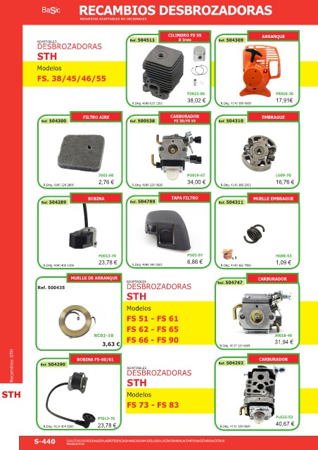 Recambios STH Ref. 504290 BOBINA FS-60/61 ADAPTABLES Ref. 504292 CARBURADOR