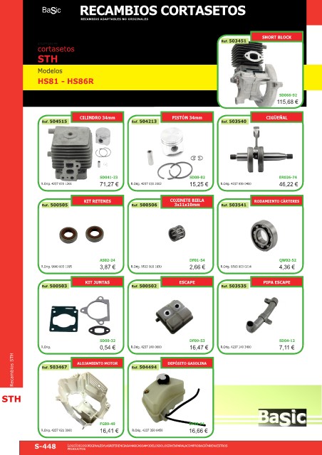 Recambios STH Ref. 503467 ALOJAMIENTO MOTOR Ref. 504494 DEPÓSITO GASOLINA