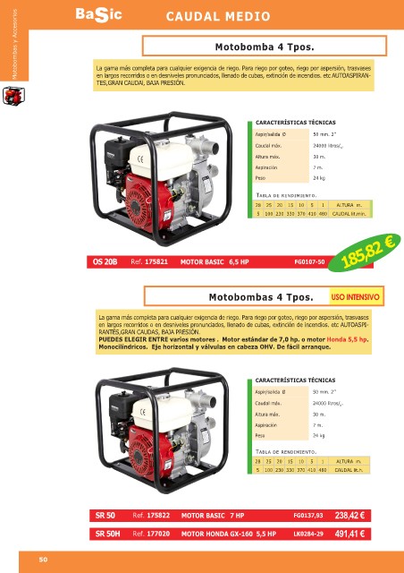 Motobombas y Accesorios Motobombas y Accesorios Ba s ic MOTOBOMBAS CAUDAL Ba s ic