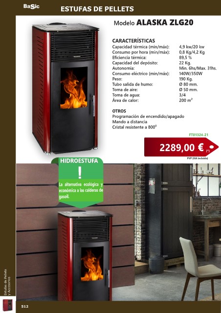 Consumo por hora (min/máx): 0,8 Kg/4,2 Kg