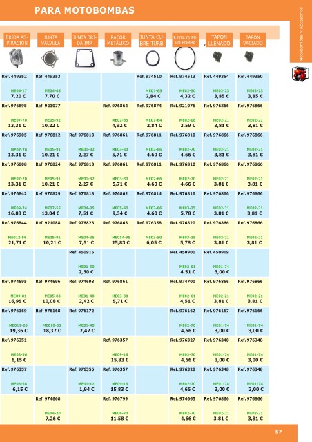BRIDA AS- JUNTA JUNTA BRI- RACOR JUNTA CU- JUNTA CUER- TAPÓN TAPÓN Motobombas y Accesorios