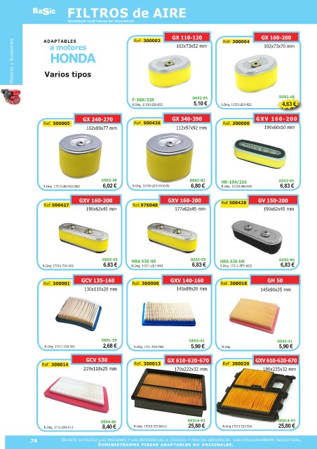 RECAMBIOS ADAPTABLES NO ORIGINALES Ref. 300002 GX 110-120 Ref. 300004 GX 160-200