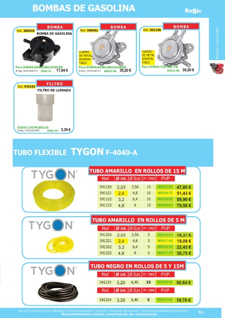 En este catálogo las imágenes y las referencias a códigos y marcas originales son exclusivamente indicativas. 91