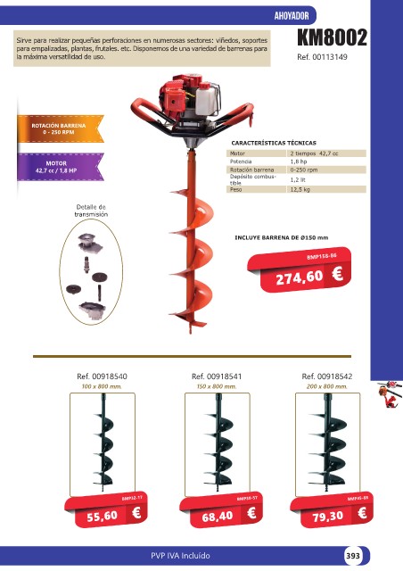 para empalizadas, plantas, frutales. etc. Disponemos de una variedad de barrenas para