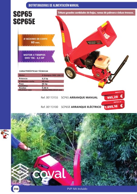 SCP65 Tritura grandes cantidades de hojas, ramas de palmera e inluso troncos.