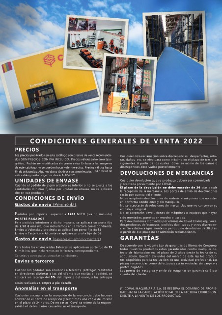 Para pedidos inferiores a dicho importe, se aplicará un porte fijo Para devoluciones motivadas por errores de Coval: Envios equivoca-