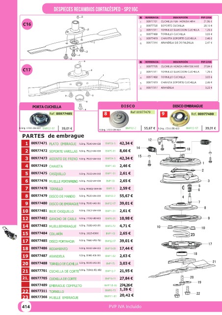 1 00977705 CUCHILLA HONDA HRH 536 HXE 27,84 €
