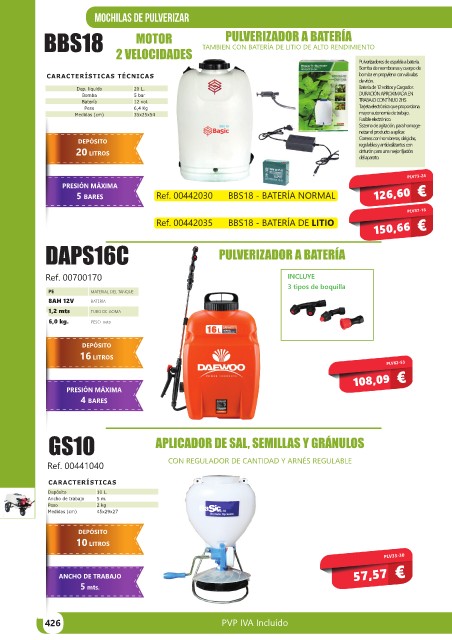 Dep. líquido 20 L. Batería de 12 voltios y Cargador.