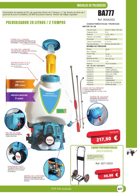 PULVERIZADOR 20 LITROS / 2 TIEMPOS CARACTERÍSTICAS TÉCNICAS