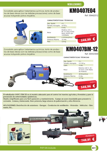 corrosión. Liviana y balanceada. Gran potencia, largo alcance de pulverización y alta eficiencia.