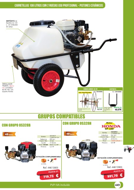 CARRETILLAS 100 litros con 2 ruedas USO PROFESIONAL - pistones cerámicos