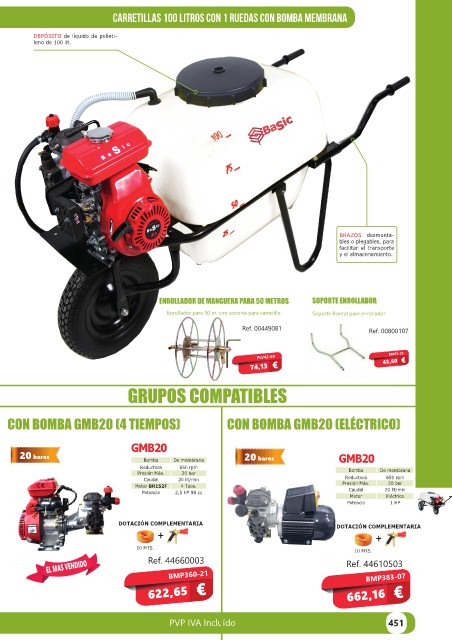 CARRETILLAS 100 litros con 1 ruedas CON BOMBA membrana