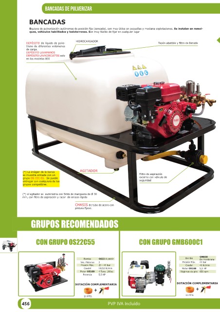 Equipos de pulverización autónomos de posición fija (bancada), son muy útiles en pequeñas y mediana explotaciones. Se instalan en remol-