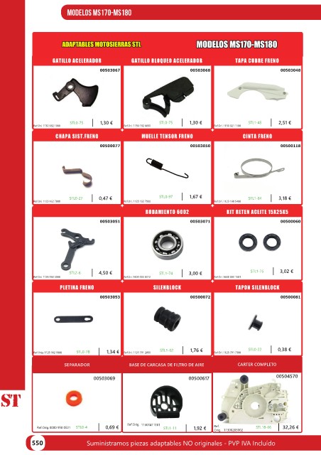 550 Suministramos piezas adaptables NO originales - PVP IVA Incluído