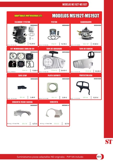 Suministramos piezas adaptables NO originales - PVP IVA Incluído 551