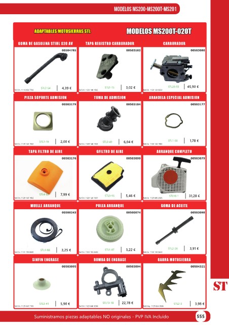 Suministramos piezas adaptables NO originales - PVP IVA Incluído 555