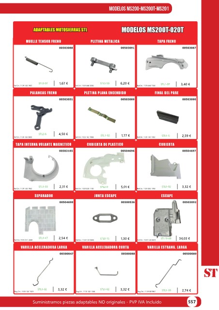 Suministramos piezas adaptables NO originales - PVP IVA Incluído 557